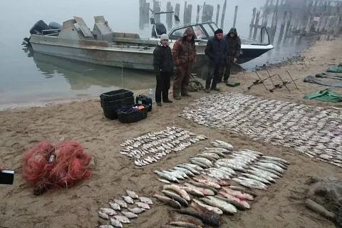 У браконьеров в ходе задержания изъяты пластиковая лодка с двумя моторами и прибор навигации. В местах незаконной добычи рыбы обнаружено пять сетей общей протяженностью 375 м., в которых находилось: 131 штука рыбы породы пиленгас, 98 судаков, 1834 тарани, 37 лещей, четыре сазана, одна шемая, занесенная в Красную Книгу России и Краснодарского края). Общая масса рыбы составила около тонны. Ущерб - 1 680 000 рублей, сообщает пресс-служба ПУ ФСБ России по Краснодарскому краю.
