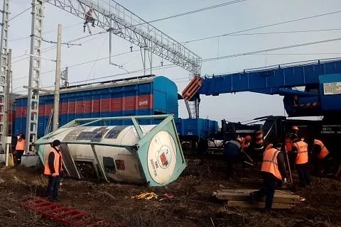 В Краснодарском крае сошли с рельсов два вагона поезда со спецгрузом