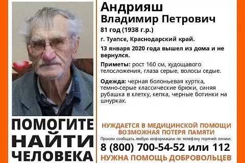 Владимир Андрияш вышел из дома 13 января и не вернулся. Мужчина нуждался в медицинской помощи. Искали пенсионера неделю. 21 января его обнаружили мертвым.