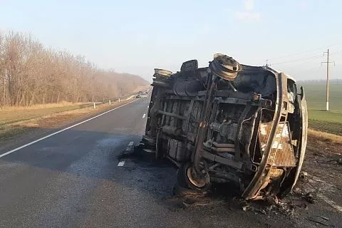 В какой-то момент водитель ВАЗа во время обгона врезался в ограждение, после чего столкнулся с фургоном. От удара микроавтобус опрокинулся и загорелся. В результате ДТП пострадали четверо пассажиров «Газели» и водитель ВАЗа.