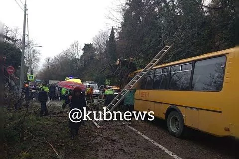 В Краснодарском крае дерево рухнуло на школьный автобус