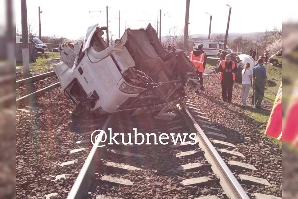 В Краснодарском крае электровоз протаранил КамАЗ на переезде. Двое пострадали