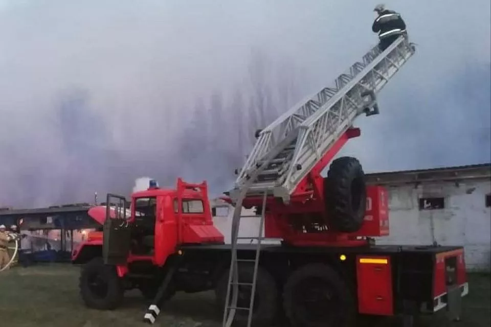 Вечером 13 марта загорелся ремонтируемый корпус птицефабрики в Лабинском районе.