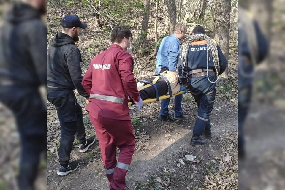 - Сегодня поступил вызов о том, что женщина пошла гулять с собакой в лес выше улицы Агатовой и упала в обрыв, при этом сломав ногу. Спасатели, медики, добровольцы при помощи носилок больше километра несли пострадавшую к автомобилю скорой медицинской помощи, - написал на своей странице в Instagram начальник муниципальной службы спасения Алексей Одеров.