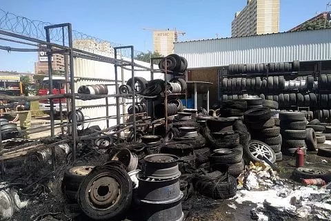 Днем 11 июля в Краснодаре на улице Красных Партизан в районе ТЦ «Лента» произошел крупный пожар. Как выяснилось, загорелся павильон станции техобслуживания. Горели шины.