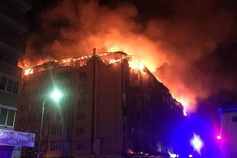 Напомним, дом состоит из 384 квартир и 164 коммерческих помещений. Предварительно установлено, что возгорание произошло на седьмом этаже, после чего распространилось на другие помещения. Этаж под воздействием огня уничтожен. Дом не газифицирован. Прокуратура проводит проверку.