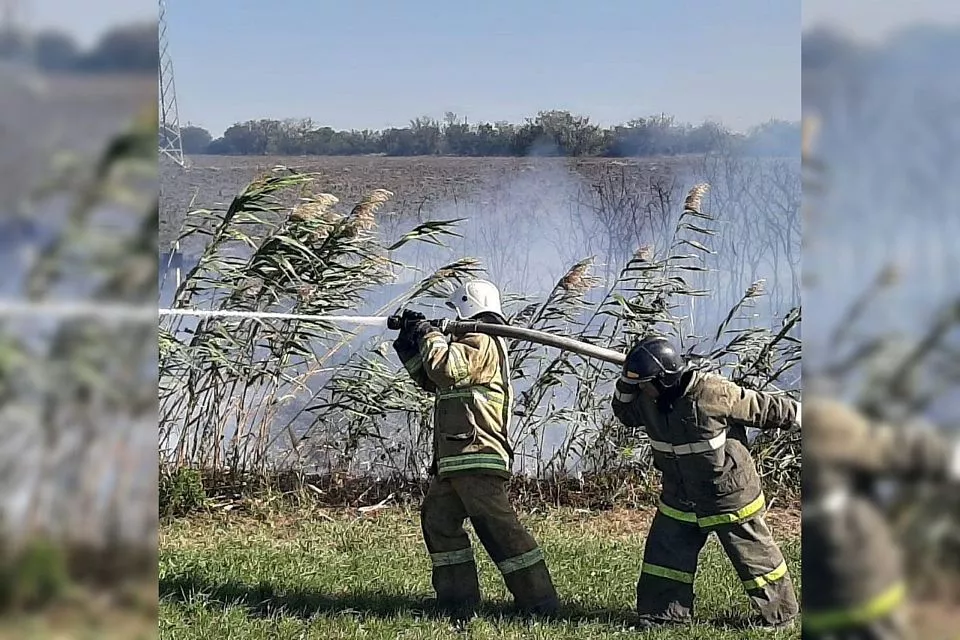 По состоянию на 17.00 происходило тление корневой части камыша. К этому времени пожарные ликвидировали два из пяти очагов возгорания.