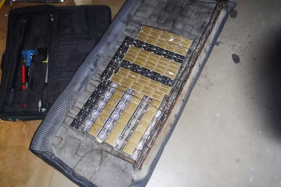 В ходе досмотра в салоне авто, за спинкой заднего пассажирского сидения были обнаружены прикрепленные скотчем сигареты Business Class. Общее количество изъятых сигарет составило 160 пачек сигарет (3200 штук). Каждый блок сигарет был упакован в заводскую пленку. Какая-либо маркировка на целлофановой пленке отсутствовала.