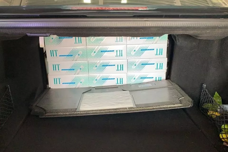 Еще один тайник был оборудован за обшивкой, разделяющей багажное отделение и салон автомобиля. Здесь были спрятаны еще 24 блока сигарет HTSuperslims. Общее количество изъятых сигарет составило 864 пачки, 17280 штук.