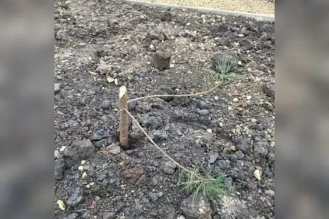 Вандалы вырубили под корень недавно высаженную в рамках благоустройства улицы сосну