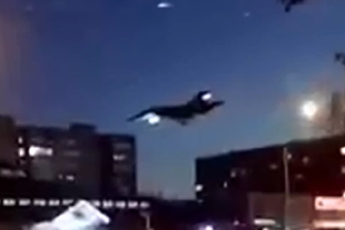 Момент падения военного самолета попал на камеру видеорегистратора в проезжавшем мимо авто.