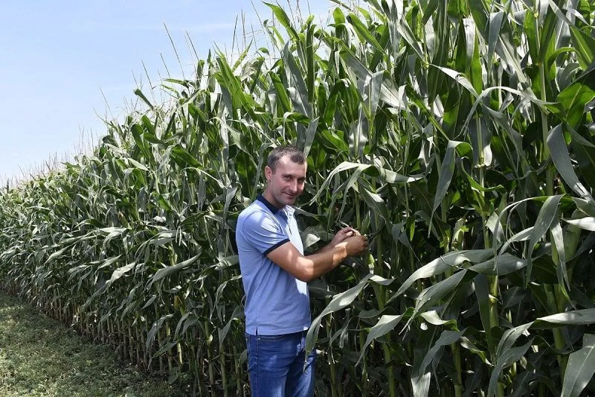– Это один из лучших гибридов – П-0216, – ответил агроном. – Да, сейчас высота достигает 3 метров, а ко времени уборки будет еще больше – до 3,7 метра. Выращиваем ее по интенсивной американской технологии и поливаем. Междурядье не 70 сантиметров по стандарту, а всего 45. Такая технология дает высокий урожай, в прошлом году собрали около 18 тонн с гектара.