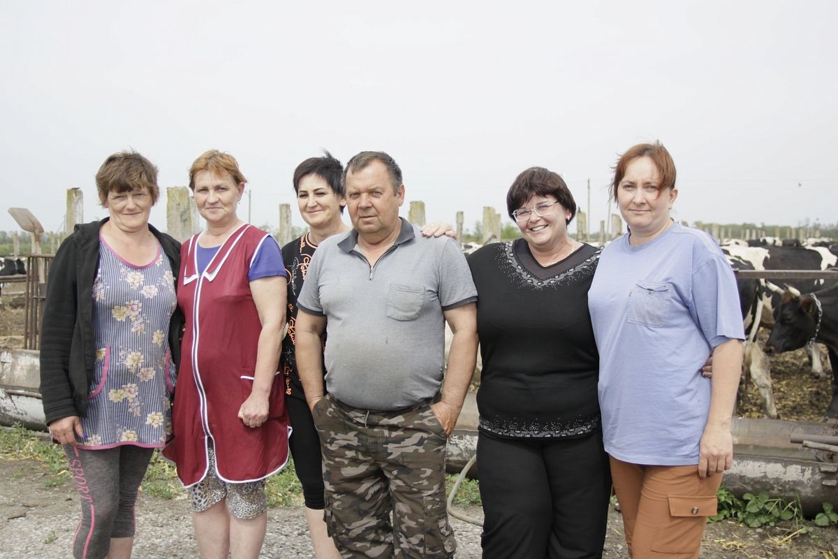 Очередная партия коров заходит в чистый, выложенный светлым кафелем доильный зал. Две женщины ловко управляются с животными, и среди них Ольга Стояненко, у которой мы брали интервью для газеты в 2016 году.