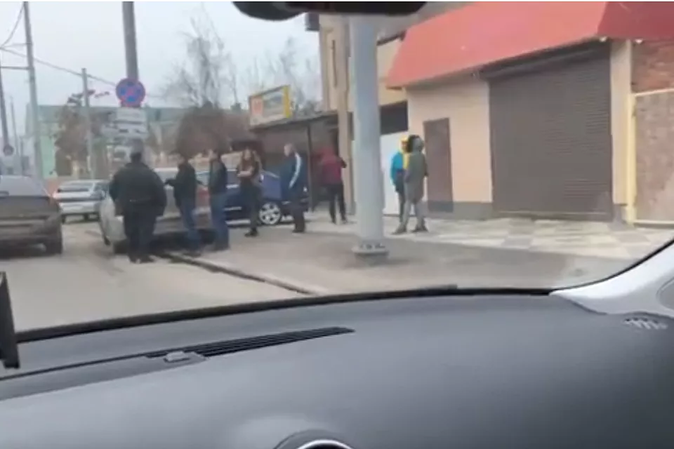 Типичное ДТП в Краснодаре: Mitsubishi протаранил припаркованный на тротуаре Volkswagen