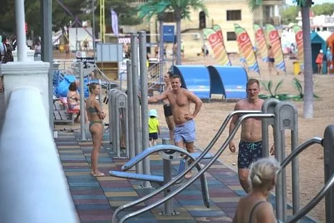 Кстати, на курорте сегодня имеется немало мест для свободного занятия спортом на свежем воздухе. Подобные площадки установлены во дворах жилых домов, на набережной курорта и в других людных местах и пользуются большой популярностью, как среди гостей курорта, так и среди местных жителей всех возрастов.