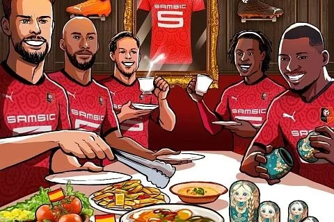 Своеобразный шарж опубликовали на официальных страницах «Ренна» в социальных сетях. На нем видно, как французский защитник Амири Траоре весело раскрывает матрешку, опорный полузащитник Эдуарду Камавинга спокойно попивает чай, а защитник Дамьен да Силва, уж больно голодный, тянется за едой.