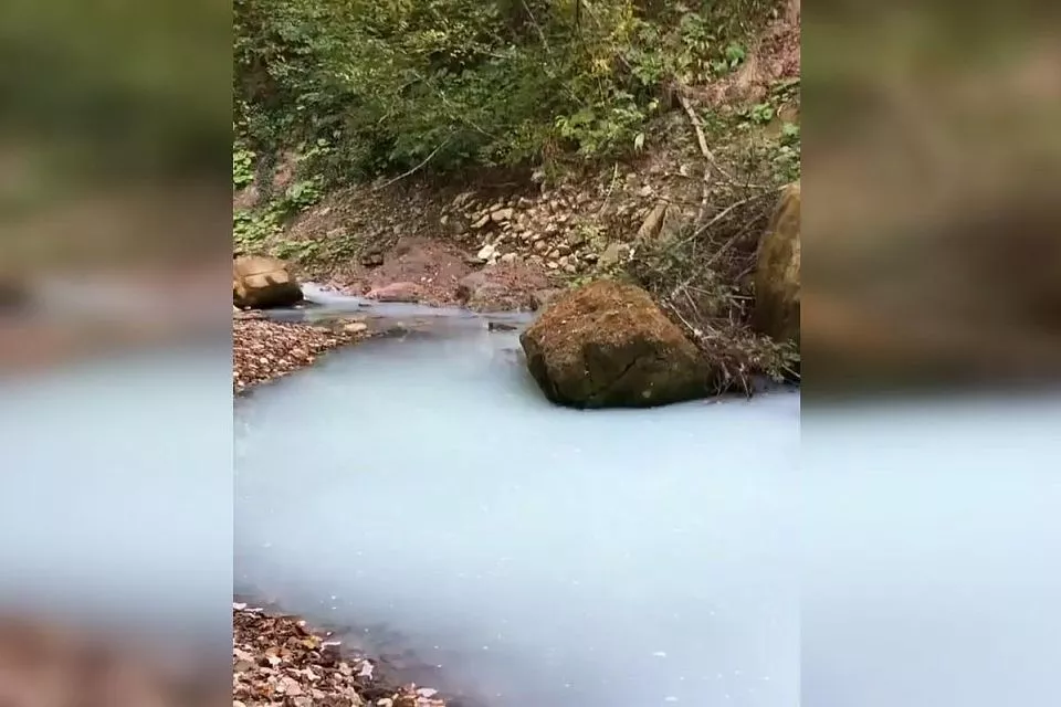Ролик появился в одном из Instagram-каналов, освещающих события в Краснодарском крае. На видео запечатлена река Агура, которая из-за содержания сероводорода приобрела молочный цвет. Автор ролика обратила внимание на специфический запах, который чувствуется рядом с рекой.