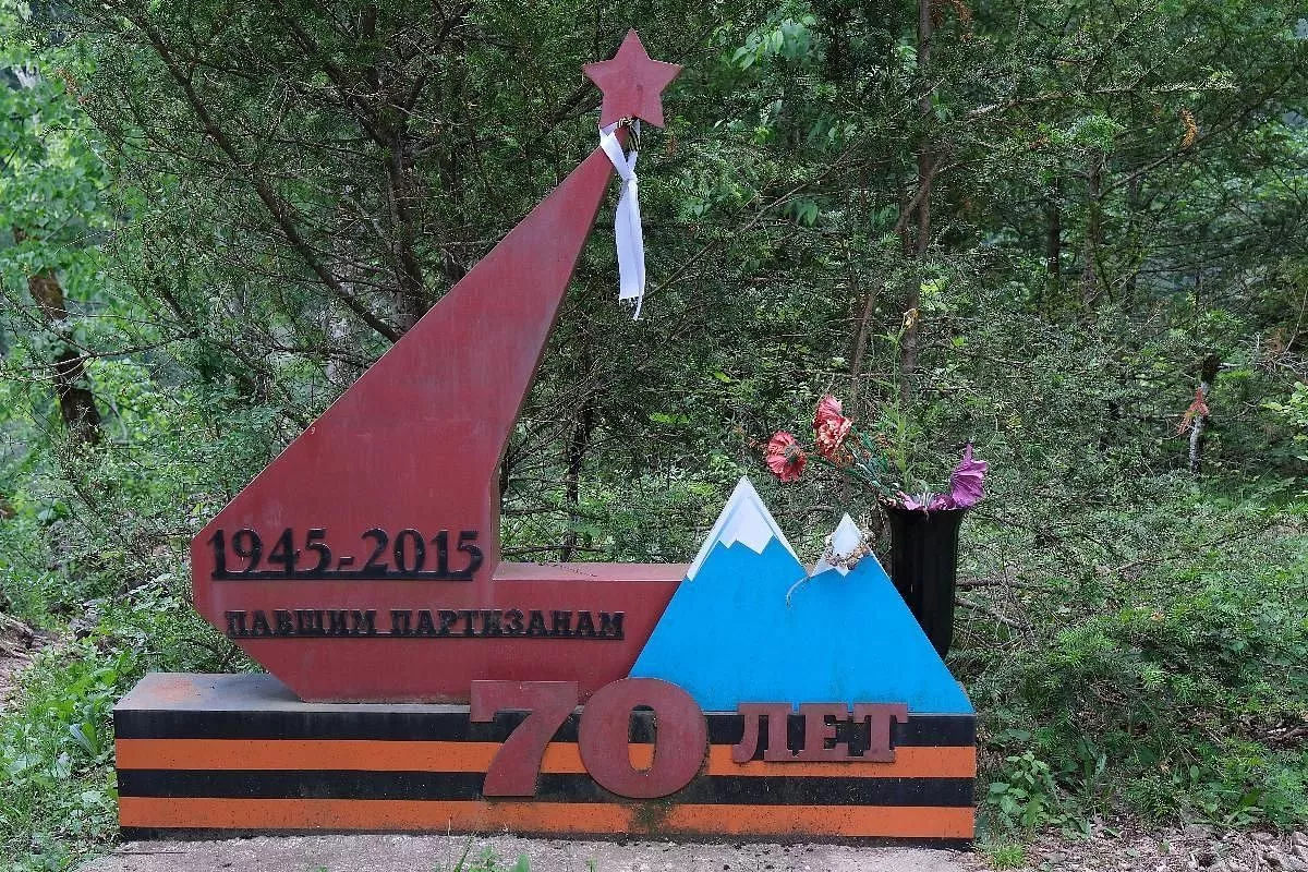 Сложный, но очень интересный маршрут пролегает к водным каскадам хутора Русского. На площадке, недалеко от которой начинается спуск к водопадам, установлен памятник павшим партизанам.