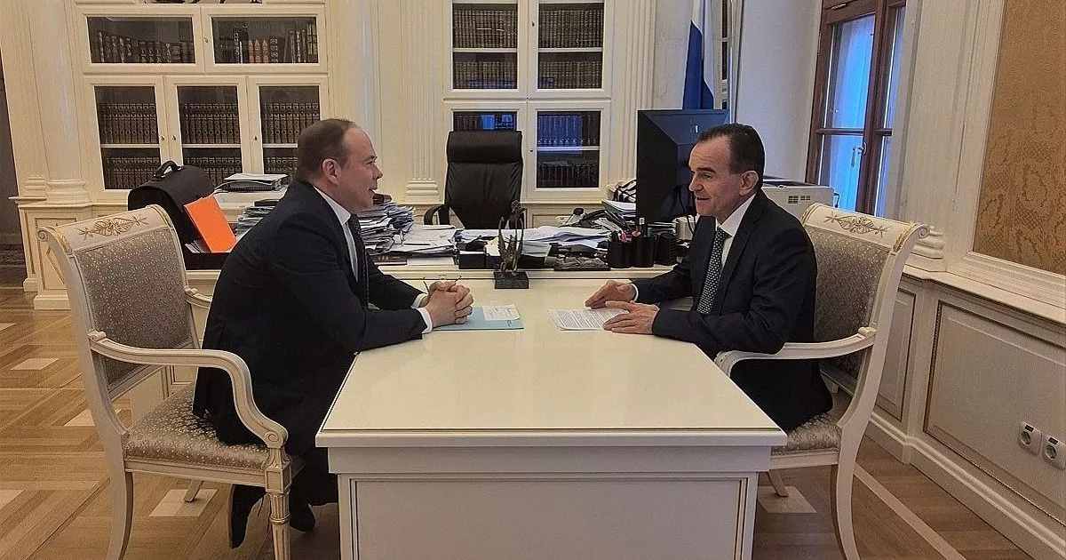 На рабочей встрече обсудили темпы социально-экономического развития Краснодарского края и реализацию в регионе нацпроектов, а также предстоящие выборы депутатов Госдумы IX созыва, которые проведут в сентябре 2026 года.