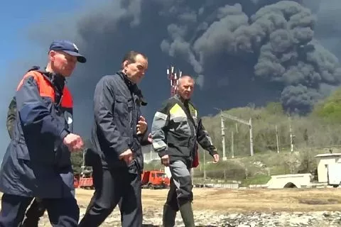 Сегодня глава региона прибыл в Туапсе. Здесь после ночной атаки украинских БПЛА горит нефтеперерабатывающий завод, произошел разлив нефтепродуктов в реку Туапсе.