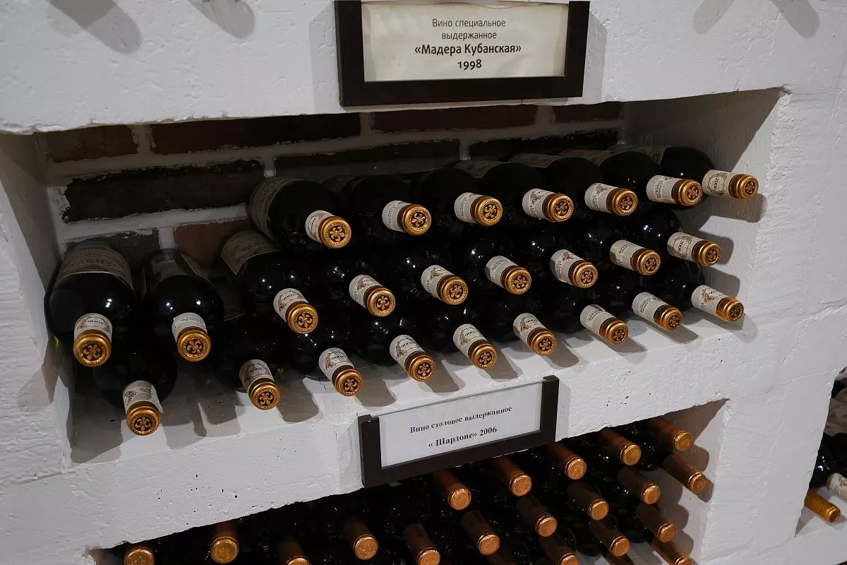Производственные центры компании находятся в Темрюке, станице Тамань и станице Старотитаровской. Именно сюда мы решили заглянуть, побывав в галерее, где в старинных залах с уникальным микроклиматом в дубовых бочках выдерживаются вина, а также в винном погребе и музее.