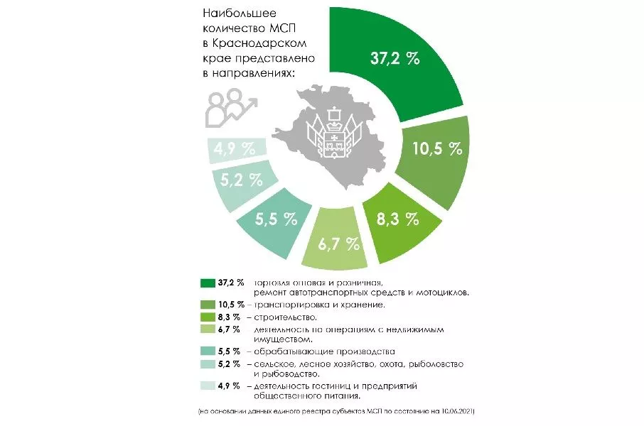 Развитие малого и среднего бизнеса – одно из приоритетных направлений экономики на Кубани. Результаты этой работы в цифрах говорят сами за себя. Доля малого и среднего бизнеса в регионе находится на уровне более 87 процентов. В крае действует более 268 тыс. субъектов малого и среднего предпринимательства. По этому показателю Кубань стабильно входит в топ-5 российских регионов и уверенно занимает первое место в Южном федеральном округе. При этом порядка 97 процентов представителей МСП можно отнести к категории микропредприятий. Маленькие размеры бизнеса и небольшие издержки позволяют таким предприятиям быть более гибкими и быстрее реагировать на изменчивые запросы рынка.