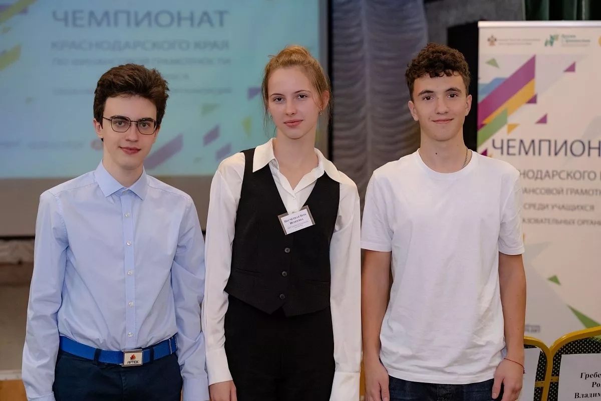 В этом году впервые за всю историю конкурса победителями чемпионата по финансовой грамотности среди школьников Краснодарского края стали сразу две команды. Первое место разделили ученики из школы № 1 Ленинградского района и краснодарского лицея № 64 имени В. Миронова. Бронзу завоевали представители школы № 14 в станице Родниковской Курганинского района.