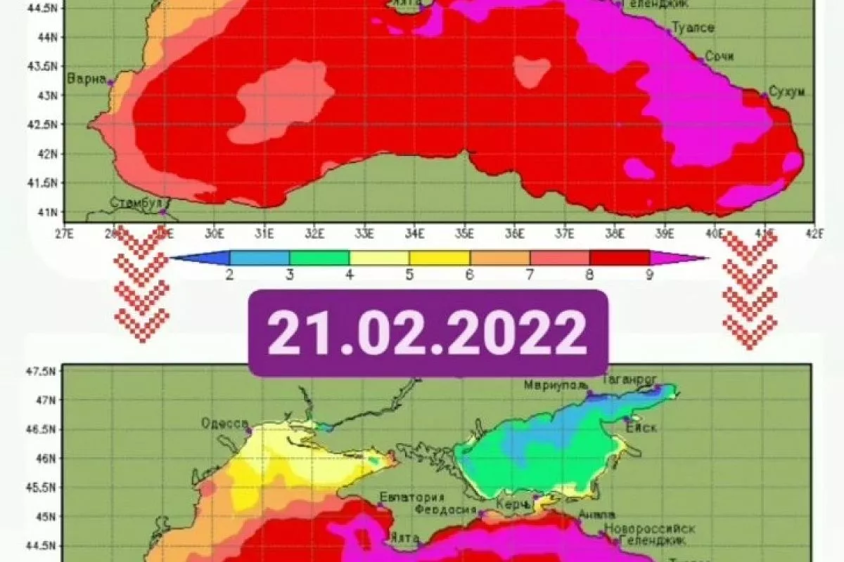 По данным Краснодарского центра по гидрометеорологии и мониторингу окружающей среды, Черное море у берегов Кубани начало прогреваться на последнем месяце зимы. По данным за 20 и 21 февраля разница в температуре воды заметно отличается. Теперь +9 не только на мелководье, но и на открытых территориях.