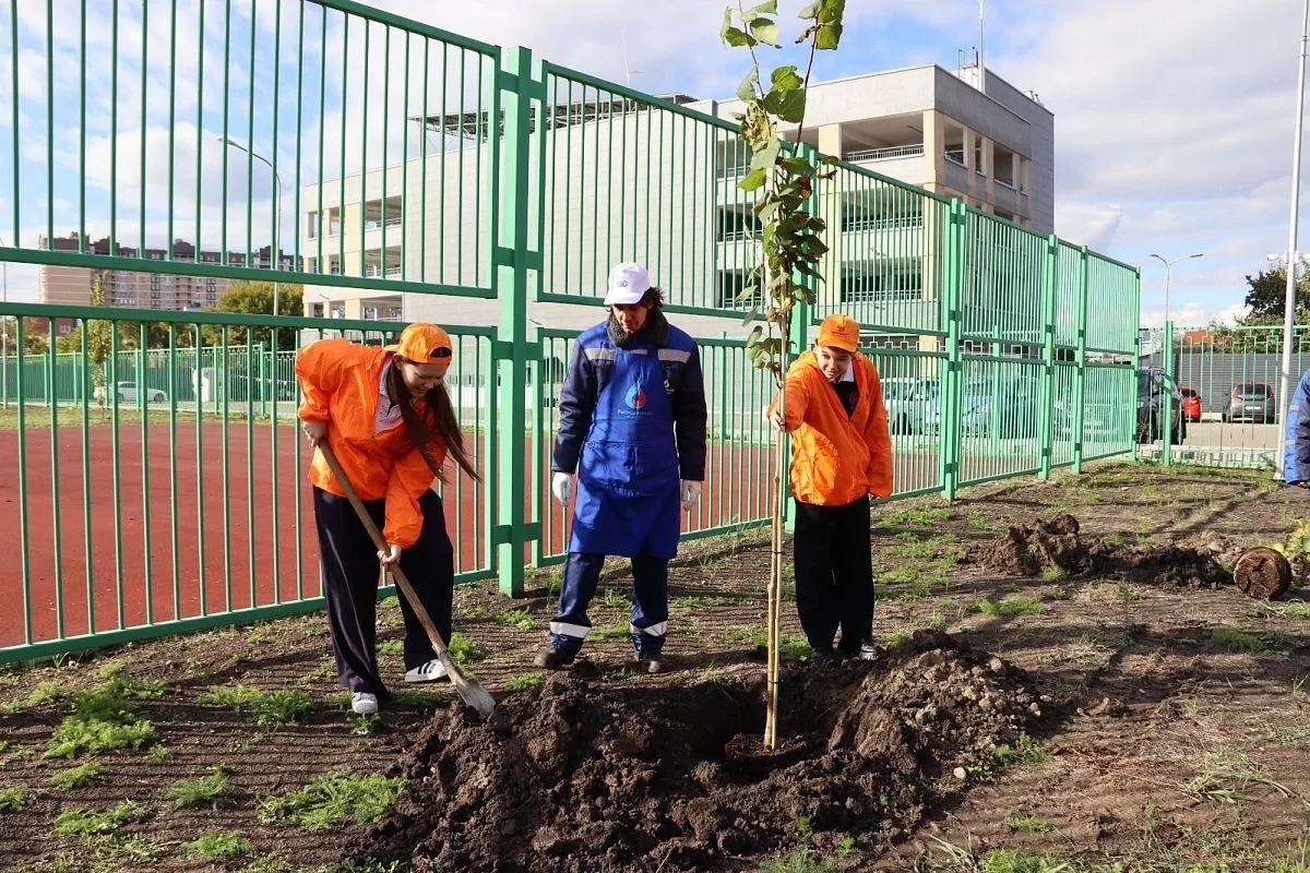 «Росводоканал Краснодар» совместно с добровольческим отрядом старшеклассников «Феникс» лицея № 27 высадил на территории школы аллею из десяти молодых лип.