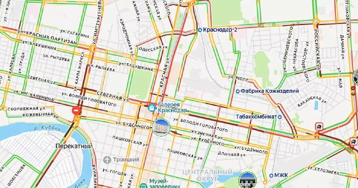 Стоят Западный и Ближний Западный Обходы. Пробки сковали улицы в районе аэропорта. Медленно двигаются автомобили по Ялтинской, Уральской, Новороссийской, Селезнева, Ставропольской, Мачуги и Старокубанской.