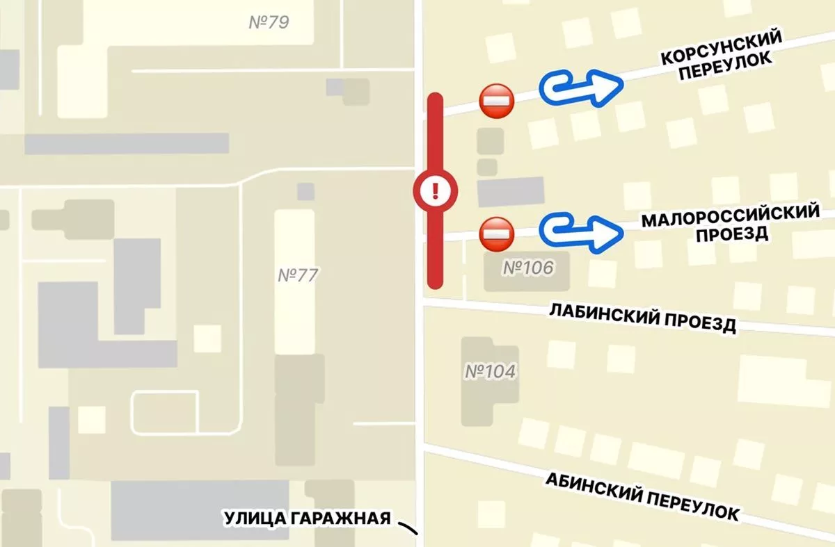 - Для ремонта сетей ливневой канализации специалисты ограничат движение по полосе улицы Гаражной по направлению из центра на участке от Лабинского проезда до Корсунского переулка, - говорится в публикации городского ведомства. - Кроме того, из-за ремонтных работ, не получится повернуть с улицы Гаражной на Корсунский переулок и Малороссийский проезд. На это время они станут тупиковыми.