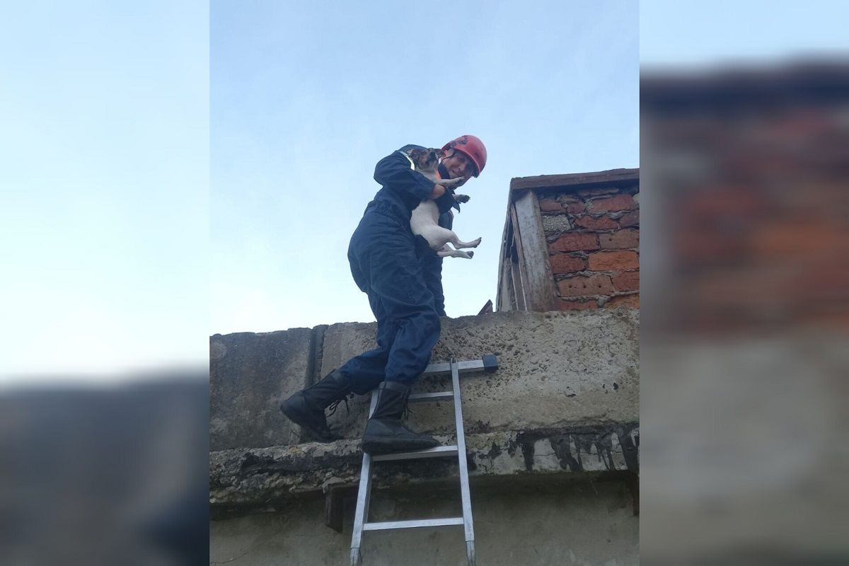 - К нам поступил вызов о том, что двое суток на крыше гаража сидит собака, как она попала туда - неизвестно. Спасатели выехали на место и при помощи приставной лестницы залезли на крышу гаража и опустили пса на землю, а затем передали его девочке которая забрала его себе, - написал Одеров.
