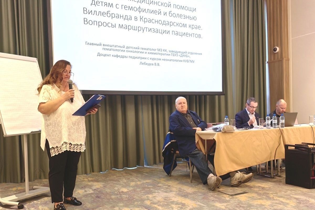 Первым с докладом выступил главный внештатный детский гематолог минздрава Кубани, заведующий отделением гематологии, онкологии и химиотерапии Детской краевой клинической больницы Владимир Лебедев. Он рассказал об организации медицинской помощи в Краснодарском крае детям, страдающим врожденными дефектами гемостаза, затронул вопросы диагностики, маршрутизации пациентов, напомнил об ответственности родителей при выборе для детей спортивных секций.