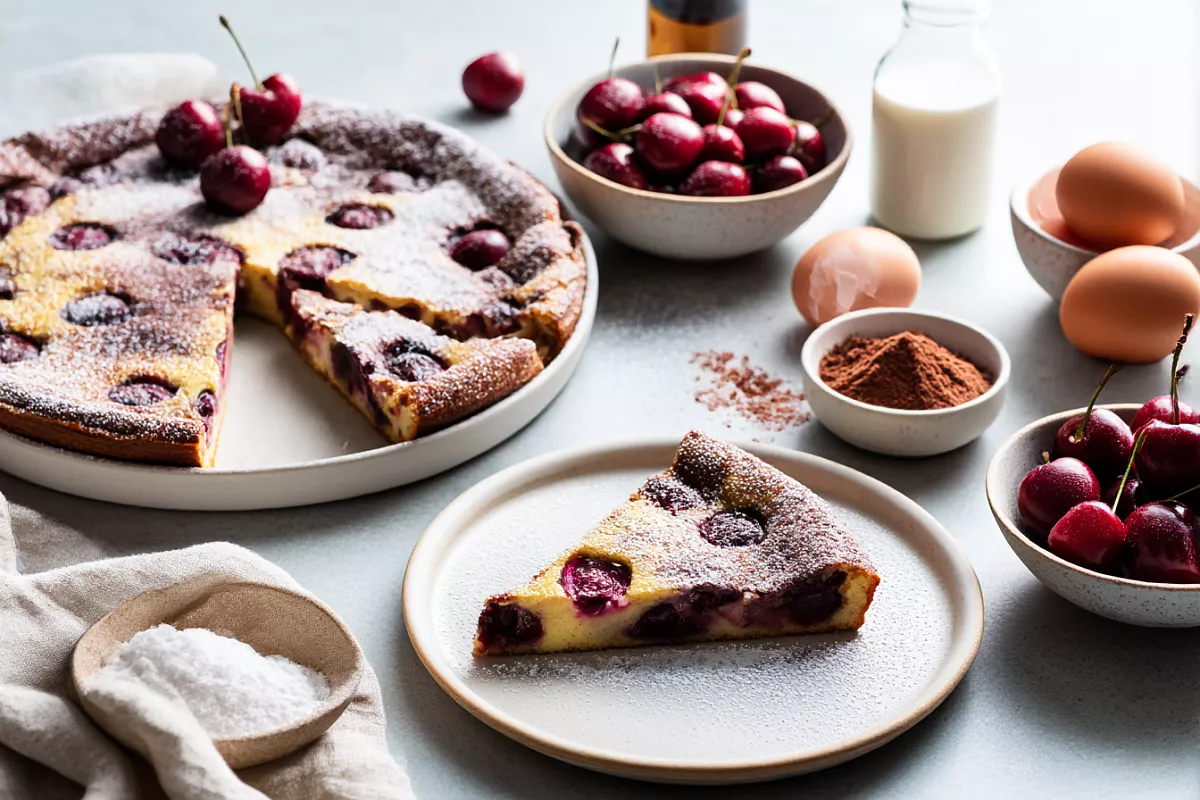 Сегодня делюсь обновлённым рецептом клафути с черешней — одной частью ванильной, другой шоколадно-миндальной.