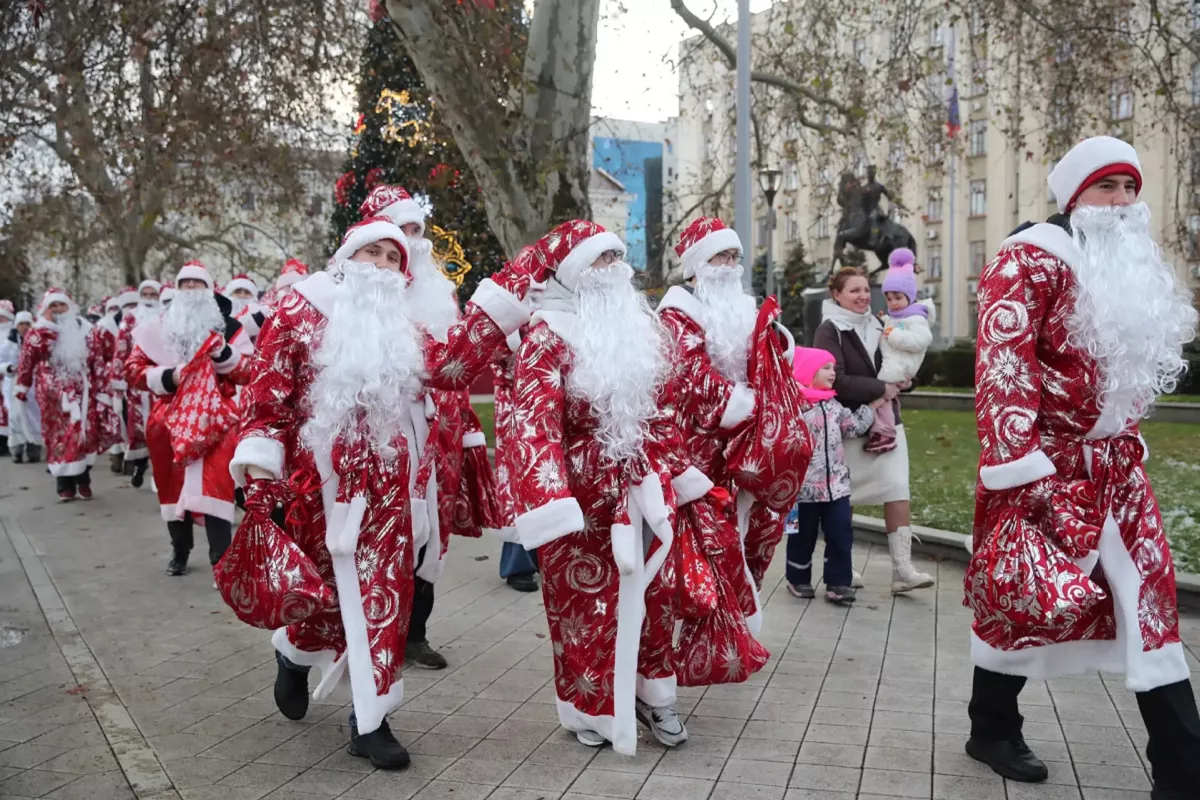Более 60 Дедов Морозов и Снегурочек прошлись по улицам кубанской столицы в преддверии Нового года.