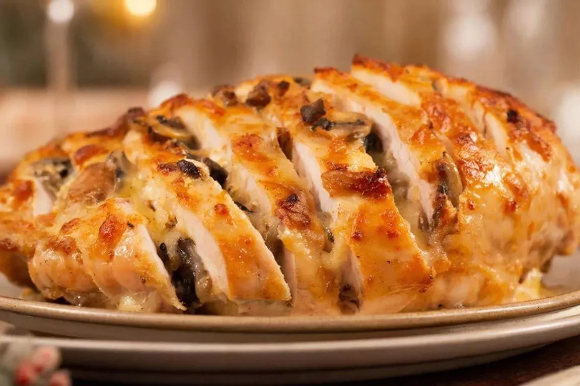 Отправьте в духовку на 25-30 минут. Сыр расплавится и образует аппетитную корочку, а курица внутри останется идеально сочной благодаря соку от грибов и помидоров.
