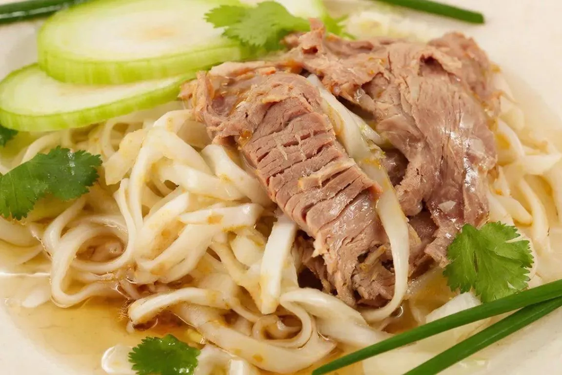 Нежная говядина даёт качественный белок без ощущения тяжести, свежий дайкон и огурец с клетчаткой мягко очищают и помогают пищеварению, а рисовая лапша легко усваивается. Острая, кисло-сладкая заправка на основе соевого соуса и лайма ускоряет метаболизм и освежает вкус.
