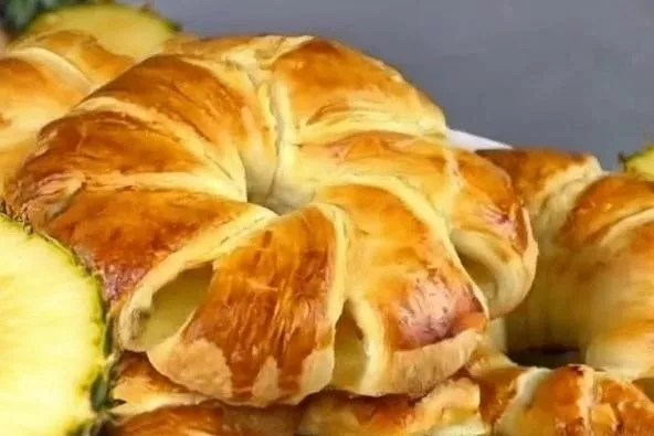 "Простые и вкусные слойки к чаю. Завернула маринованные ананасы колечками в слоено-дрожжевое тесто и запекаем", - делится рецептом автор канала "Кухня наизнанку" Оксана Чаленко.