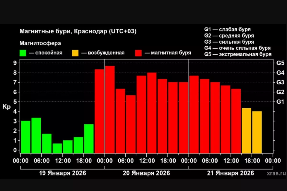 - Индекс Kp, отражающий величину этих возмущений, опустился ниже отметки в 5 единиц, которая и является нижней границей магнитной бури, - написал ведущий синоптик центра погоды «Фобос» Михаил Леус в своем Telegram-канале.