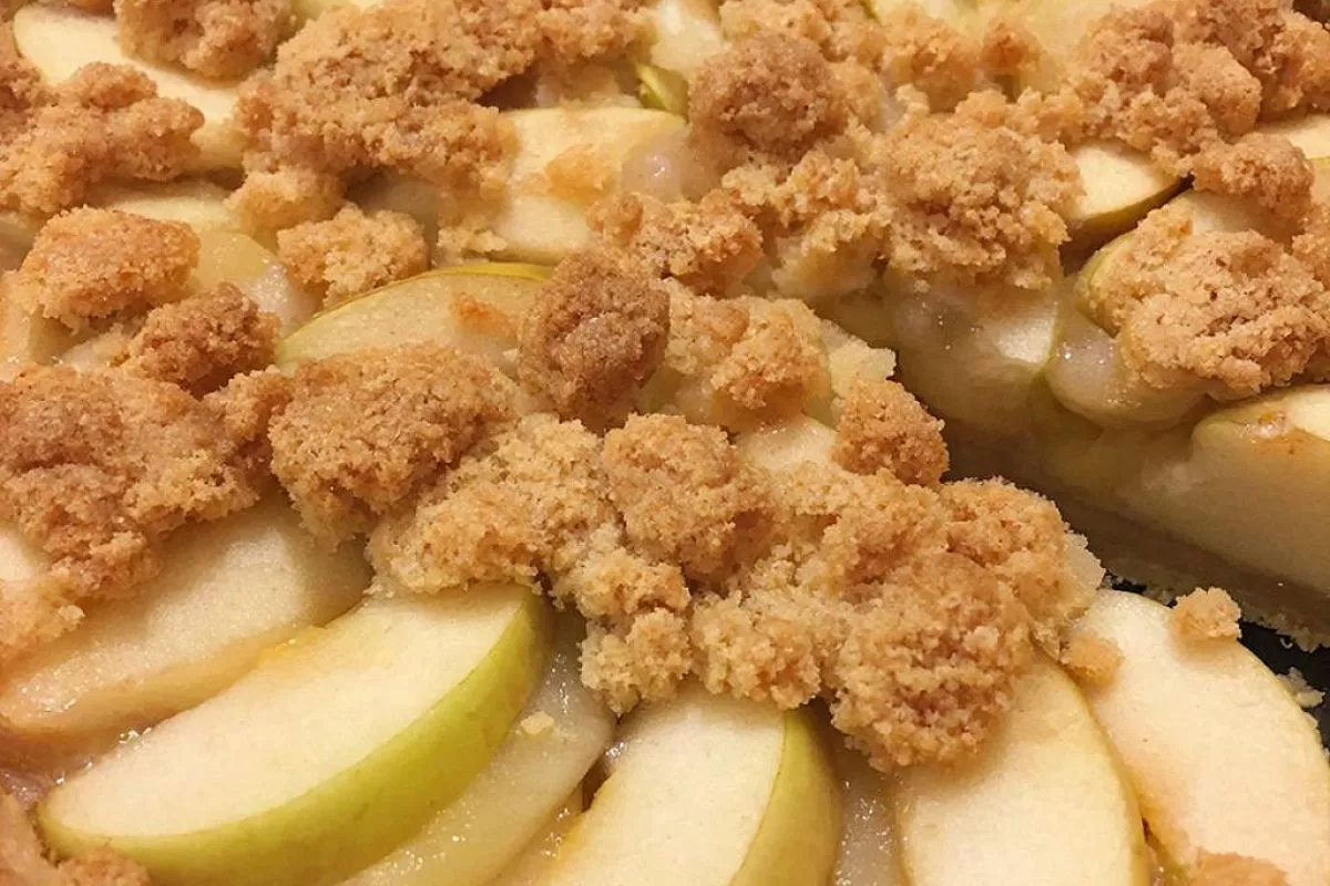 Хрустящая миндальная корочка придаёт ему статус настоящего кулинарного шедевра, идеально подходящего для чаепития. Этот яблочный пирог отличается минимальным количеством теста и обилием начинки, благодаря чему он буквально тает во рту. Для подачи лучше всего использовать его охлажденным со взбитыми сливками или ванильным мороженым.