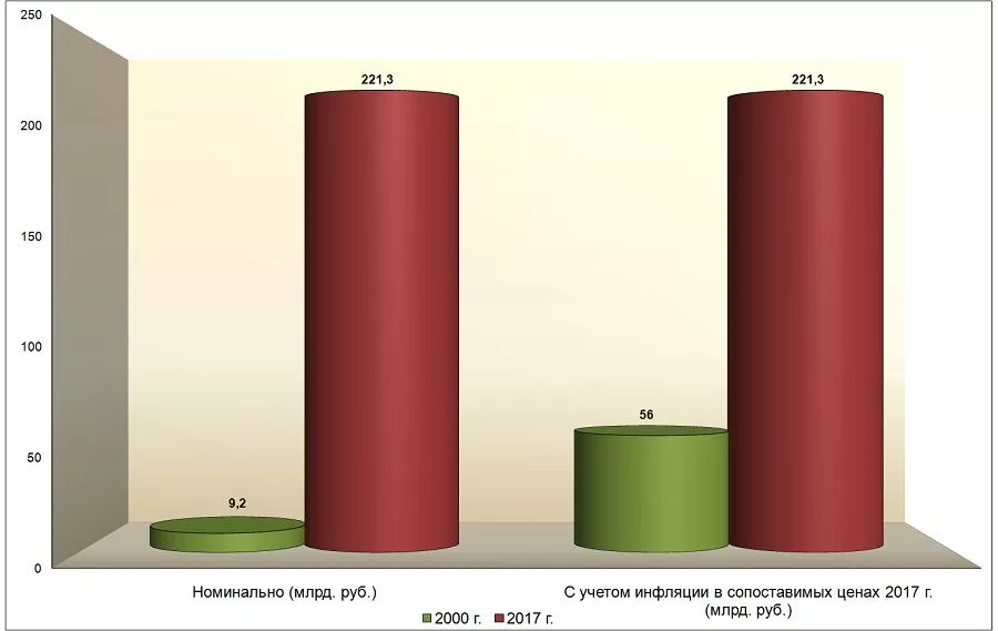 Для понимания того, как с начала века развивался край, куда важнее сам порядок цифр: 9,2 млрд рублей в 2000 году и 221,3 млрд в 2017-м.