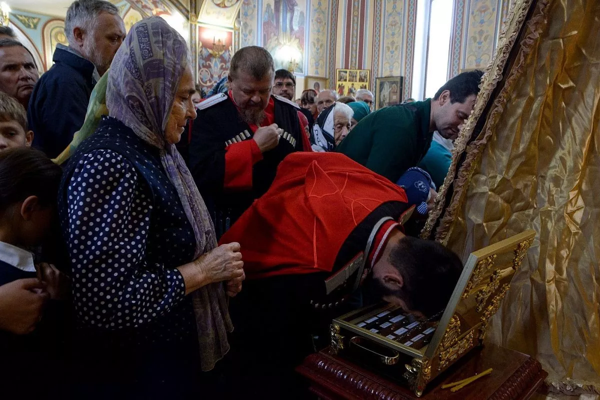 В Сочи святыни встретили в Храме Святого Равноапостольного Великого князя Владимира. До конца месяца икона с мощами побывают во всех храмах города. Последней точкой экспедиции станет Майкопский монастырь.