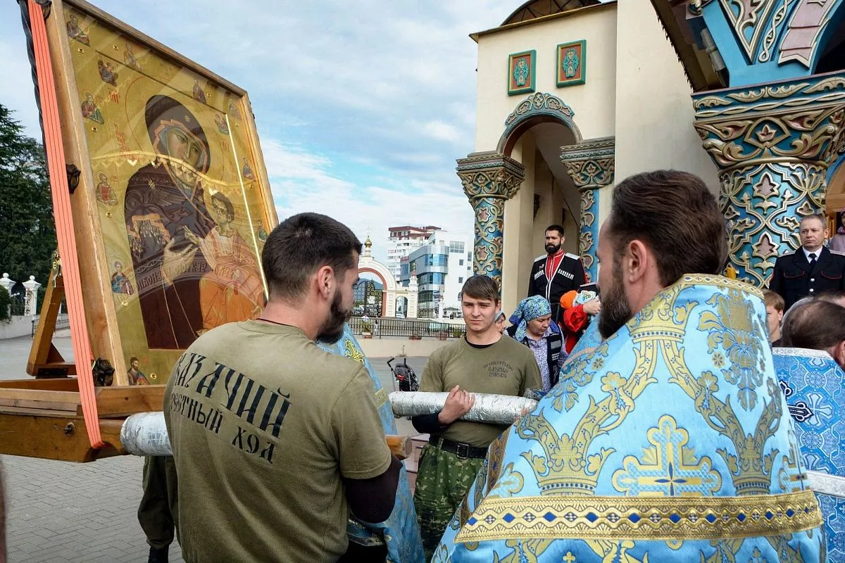 По словам Василия Доценко, товарища атамана станицы Верхне-Уральской Оренбуржского казачьего войска, на крестный ход икону благословили афонские старцы. Экспедиция состоит из сухопутного и морского этапов и призвана молитвенно соединить Свято-Михайловский Афонский Закубанский мужской монастырь, побережье Черного моря, полуостров Крым, Святую гору Афон и казачью Голгофу в Эгейском море – остров Лемнос. Для православных это возможность прикоснуться к святыням и набраться духовных сил.