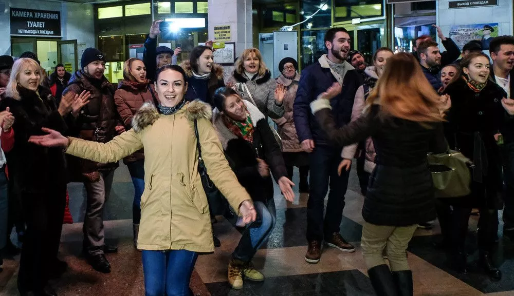 Идея проведения флешмоба зародилась 13 ноября, когда вокалисты запорожского музыкального училища им. П.И. Майбороды на железнодорожном вокзале «Запорожье-1» исполнили главную песню из любимого миллионами фильма «Весна на Заречной улице», затем эстафету перехватила Одесса с песней «Смуглянка», далее Харьков с композицией «Старый клен».