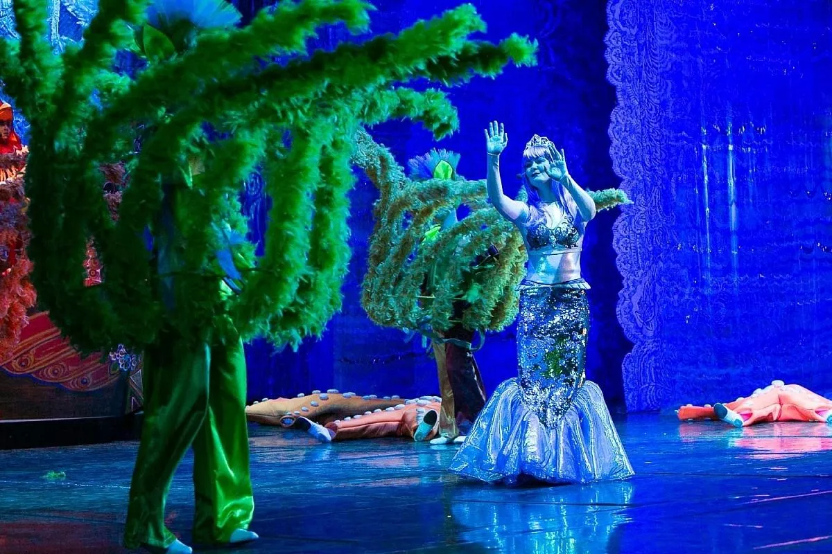 В этом году артисты творческого объединения «Премьера» представили юным зрителям двадцать третий по счету спектакль «Новогодняя фантазия» под названием «Красота несказанная». В красочном представлении принимают участие около полусотни артистов Молодежного театра, балета музыкального шоу-театра «Премьера», которые вышли на сцену в роли персонажей сказок Пушкина, сообащет пресс-служба администрации города.