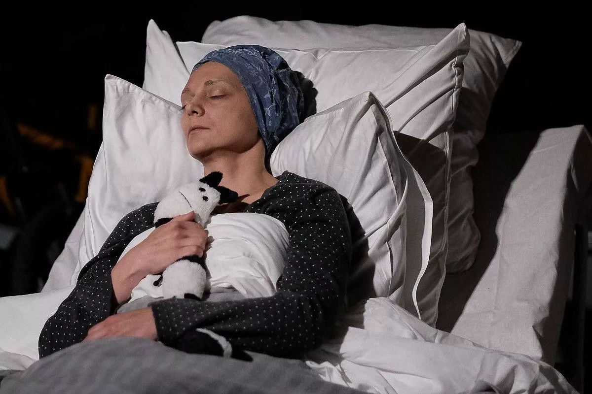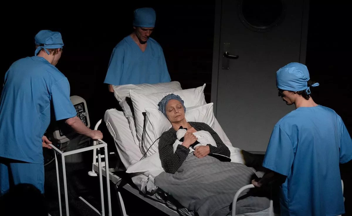 Однако действие на сцене, увлекающая, талантливая игра актеров заставляет отбросить эти мысли. История начинается словами о том, что у Лив, мамы (заслуженная артистка Кубани Людмила Дорошева) девочки нашли рак. Сразу становится ясно: перед нами – драма. Но особенность ее в том, что перфоманс все время строится на парадоксах. Трагедия здесь идет рука об руку с переживаниями, радостями, заботами, даже весельем. Автор словно напоминает нам – жизнь и смерть всегда рядом. Разговор матери и дочери о смертельной болезни перебивается громкой музыкой и беззаботными криками молодежи. Мама на смертном одре (Людмилу Дорошеву загримировали так, что без слез не взглянуть), а Йенна переживает о том, что парень Сакке (Никита Петров), который ей очень нравится, не обращает на нее внимание. И это не потому, что Йенна - плохая дочь, вовсе нет.