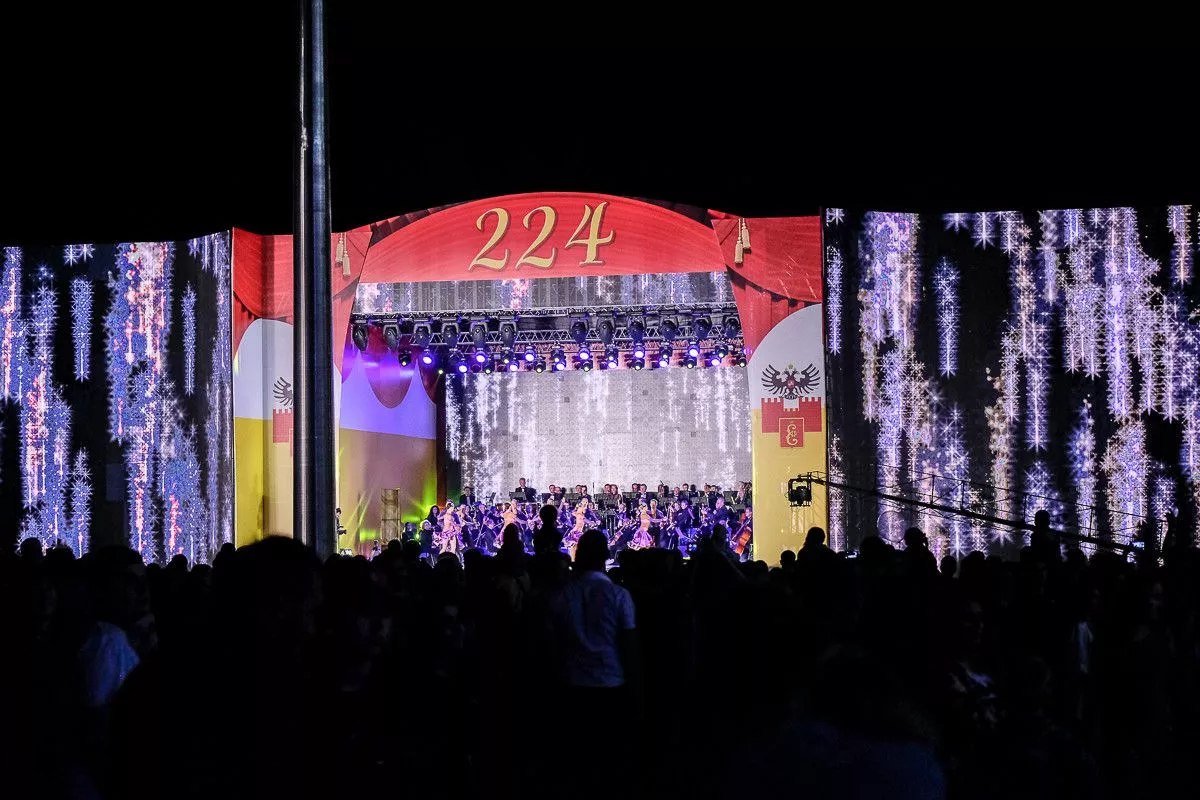 Около 40 тысяч горожан пришли вечером на главную площадь города, чтобы посмотреть гала-концерт.