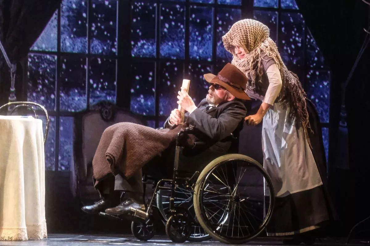 Спектакль-конструктор представляет собой литературно-сценический коллаж, состоящий из восьми произведений великих классиков. Он проходит в формате живой репетиции – в зале всегда сидит Никита Михалков. Кроме того, постановка сочетает в себе 3D-декорации, видеозарисовки и даже выпуски новостей.