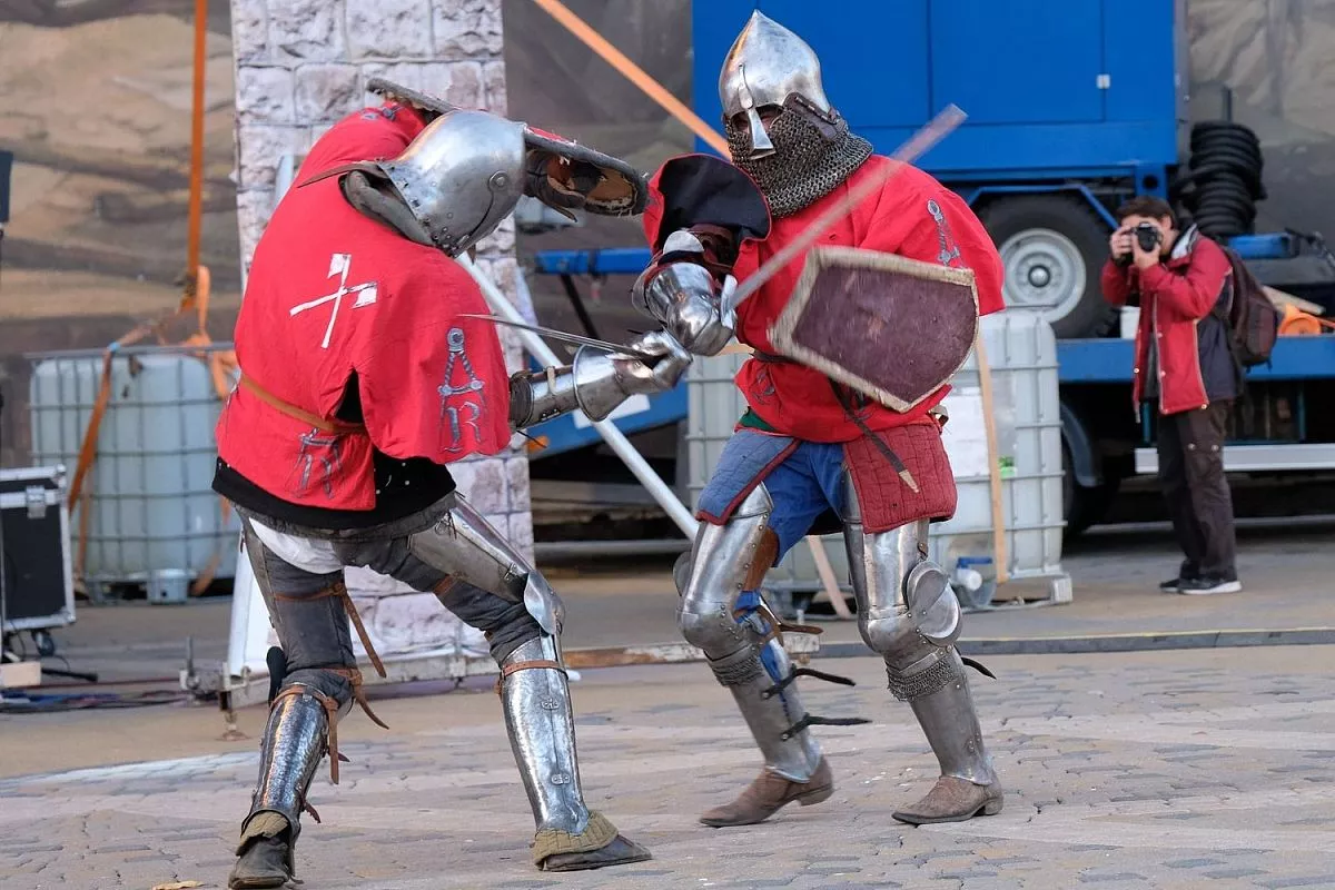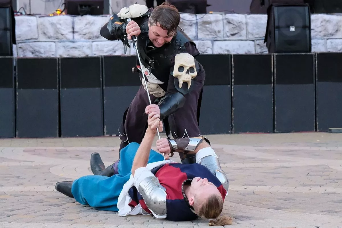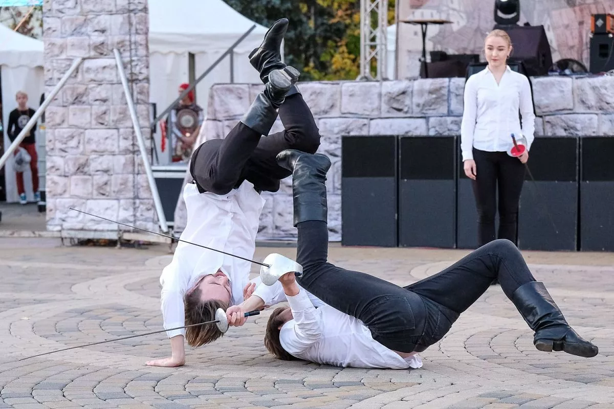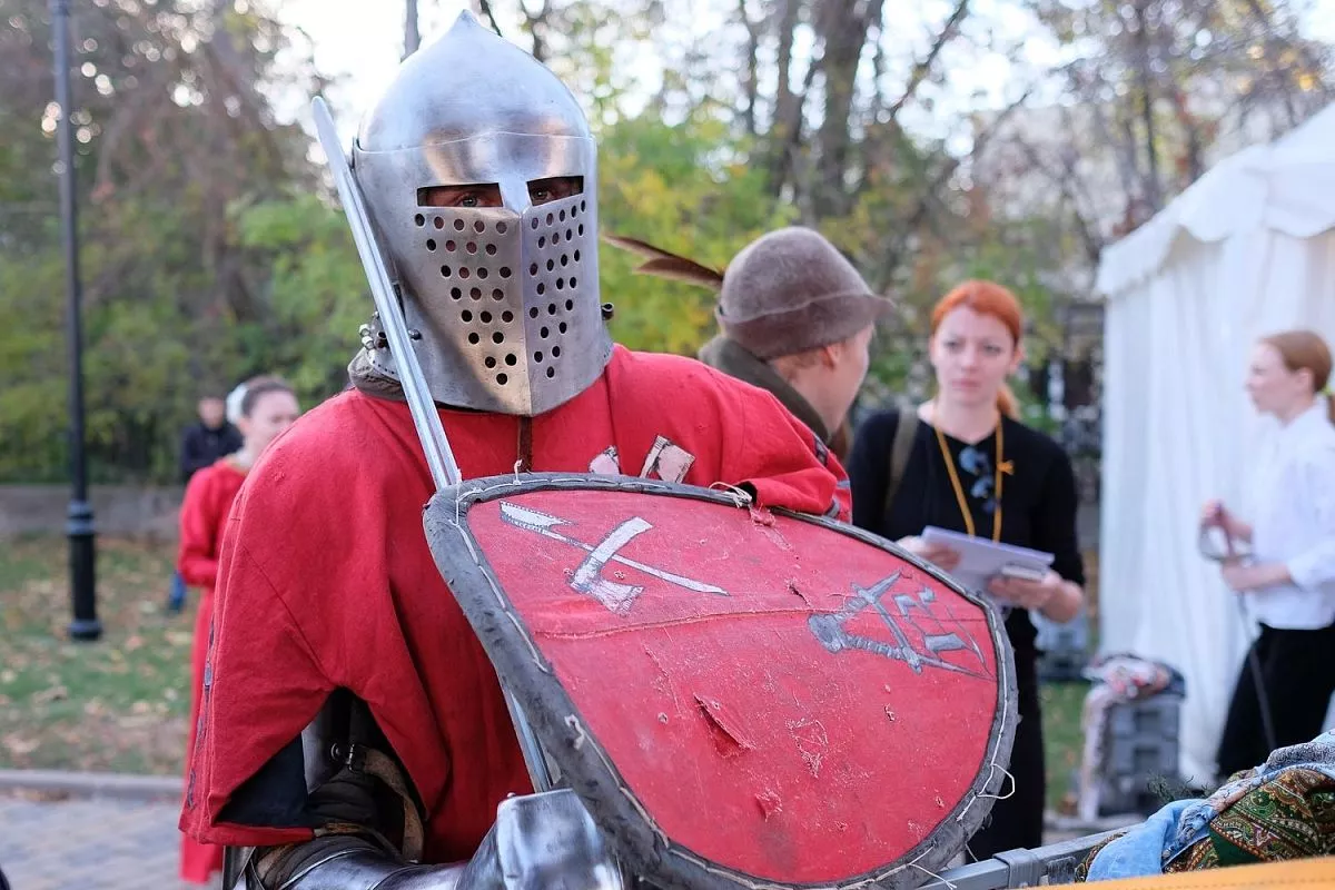 Гости праздника приняли участие в розыгрышах, конкурсах и мастер-классах по средневековым танцам, работали «живые» фотозоны в виде переодетых в костюмы и кольчужное обмундирование средневековых воинов-героев.