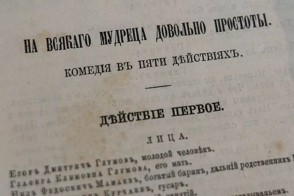 Краснодарская премьера спектакля совпадает со 150-летием первой сценической версии этой пьесы – 1 ноября 1868 года «На всякого мудреца довольно простоты» впервые сыграли на сцене Александринского театра.